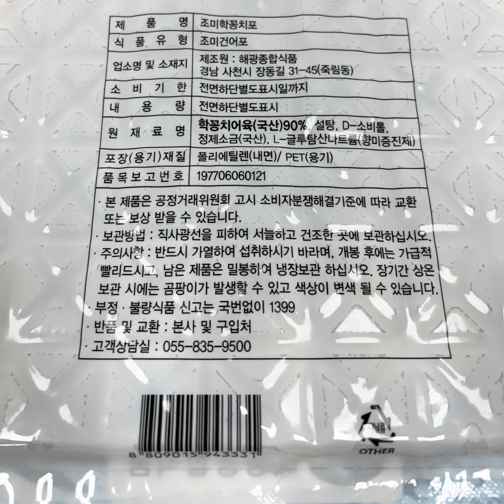 | 품목 또는 명칭 | 조미 학꽁치포 300g (사요리)/해광종합식품 |