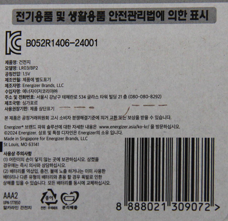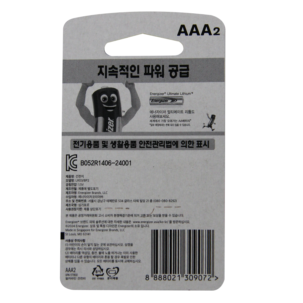 | 제품명 | NEW 에너자이저 AAA 2P /알카라인건전지 |