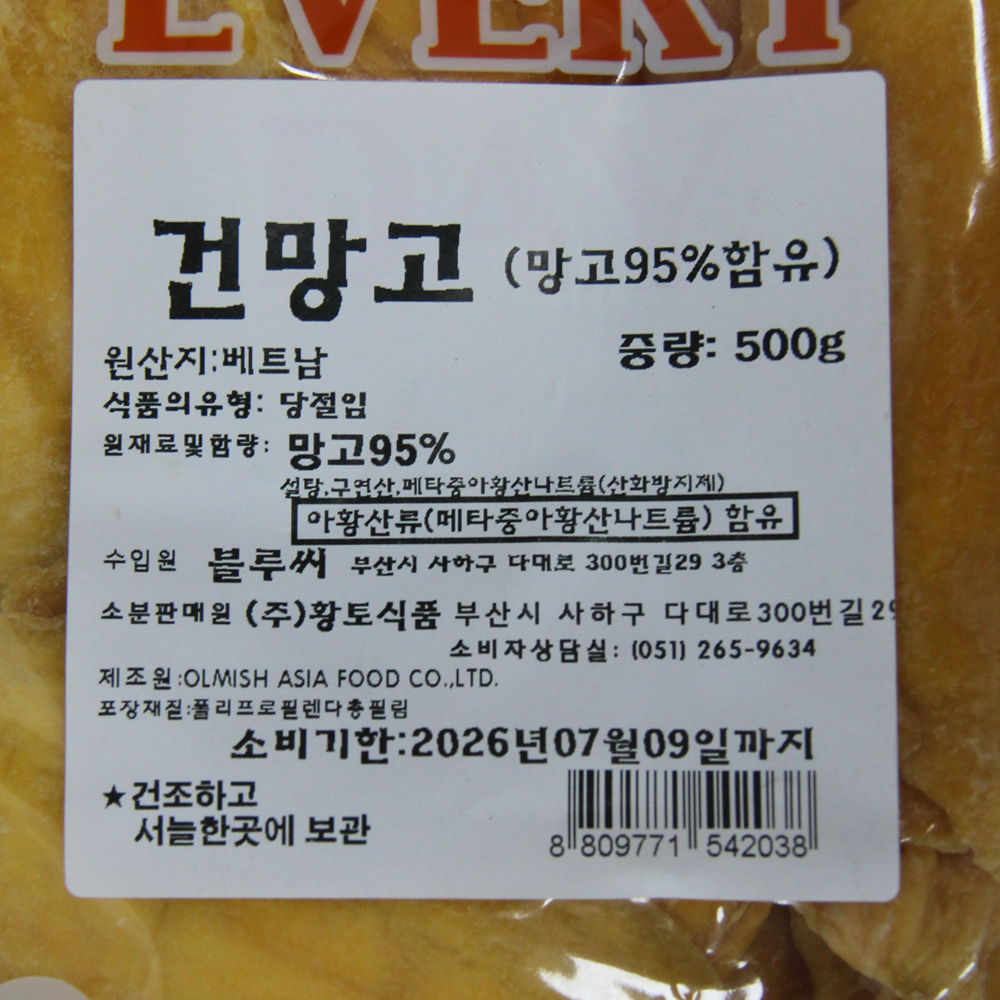 | 제품명 | 건망고 500g /황토식품 |