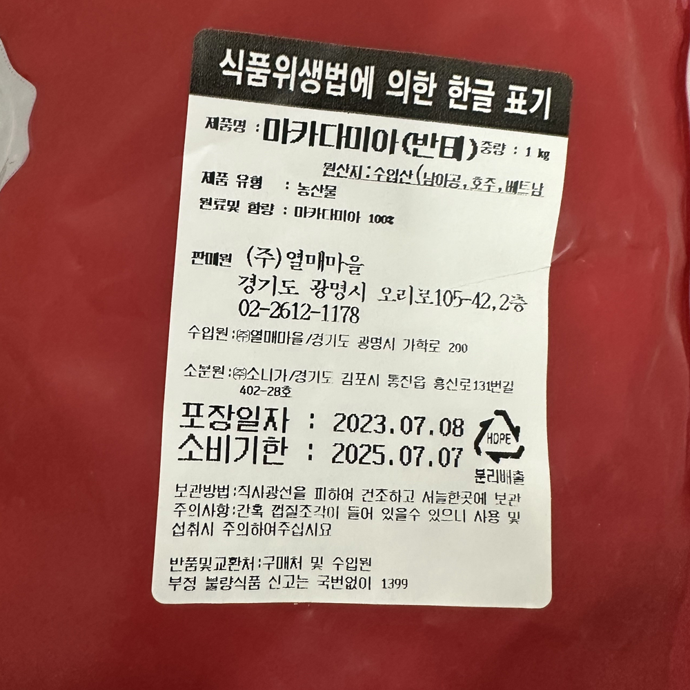 | 제품명 | 마카다미아 4호(반태) 1kg/베이킹맘 |