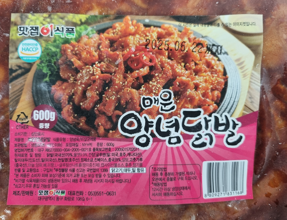 | 제품명 | 매운양념닭발 600g/맛잽이식품 |
