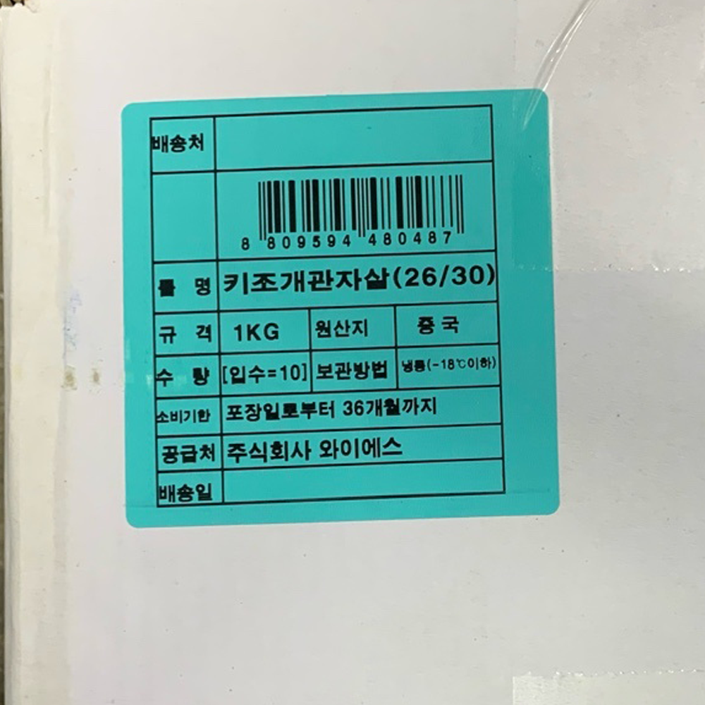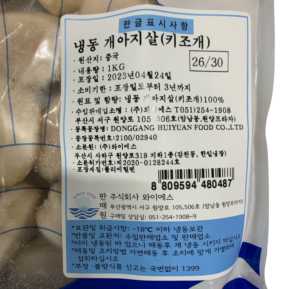 | 품목 또는 명칭 | 냉동 개아지살(키조개) 26/30 1kg/와이에스 |