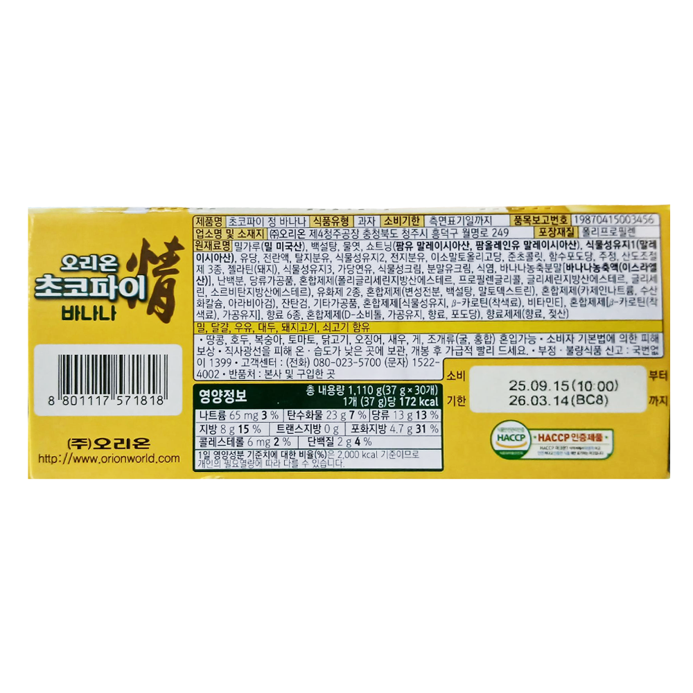 | 제품명 | 초코파이 바나나맛 실속형 30개입/오리온 |
