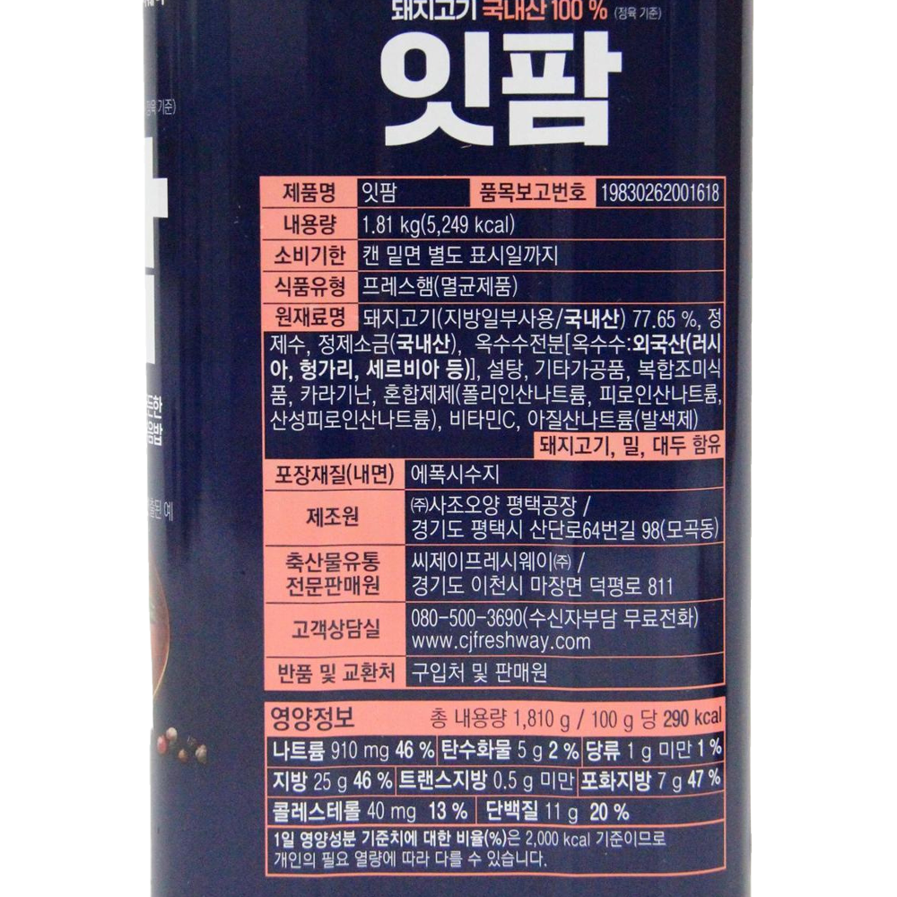 | 식품의 유형 | 프레스햄(멸균제품) |