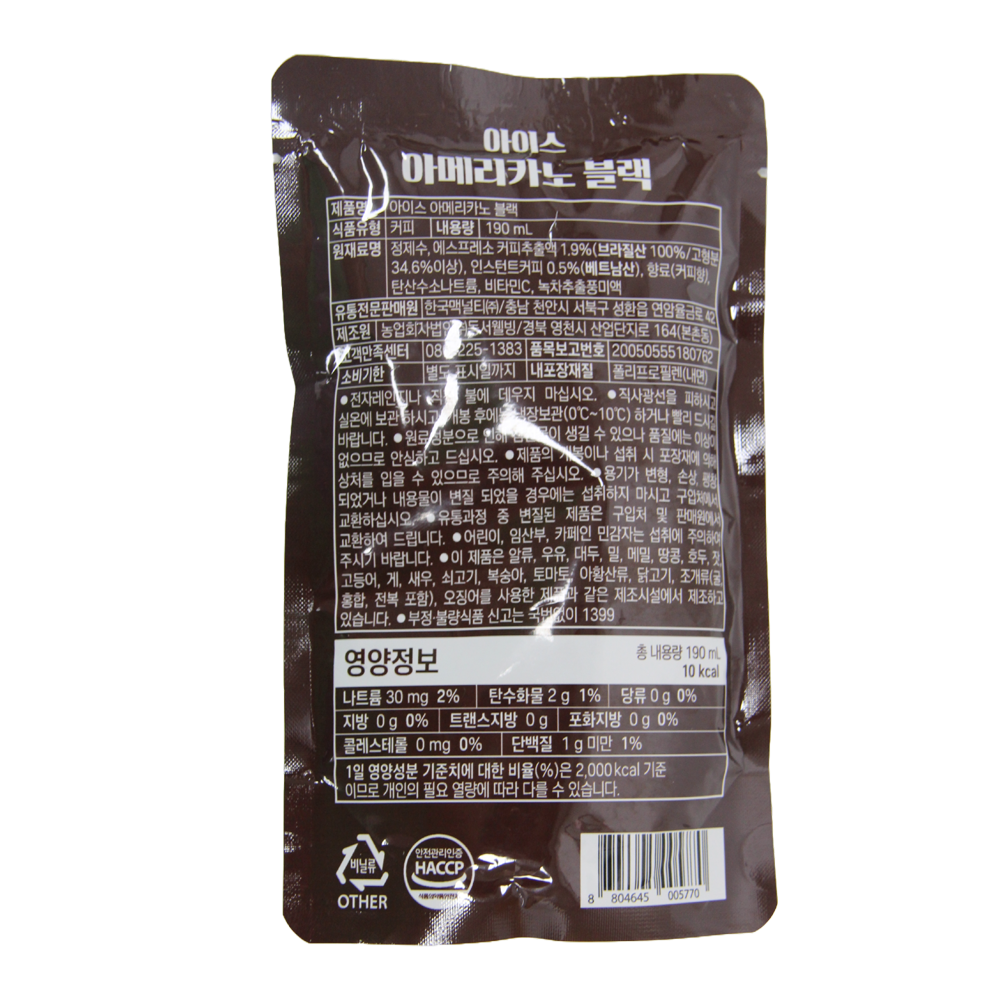 | 제품명 | 맥널티 아이스아메리카노 블랙 190ml /한국맥널티 |