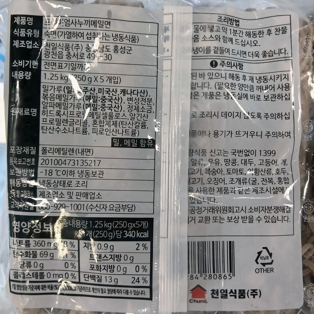 | 제품명 | 프리미엄 사누끼 메밀면 1.25kg/천일식품 |