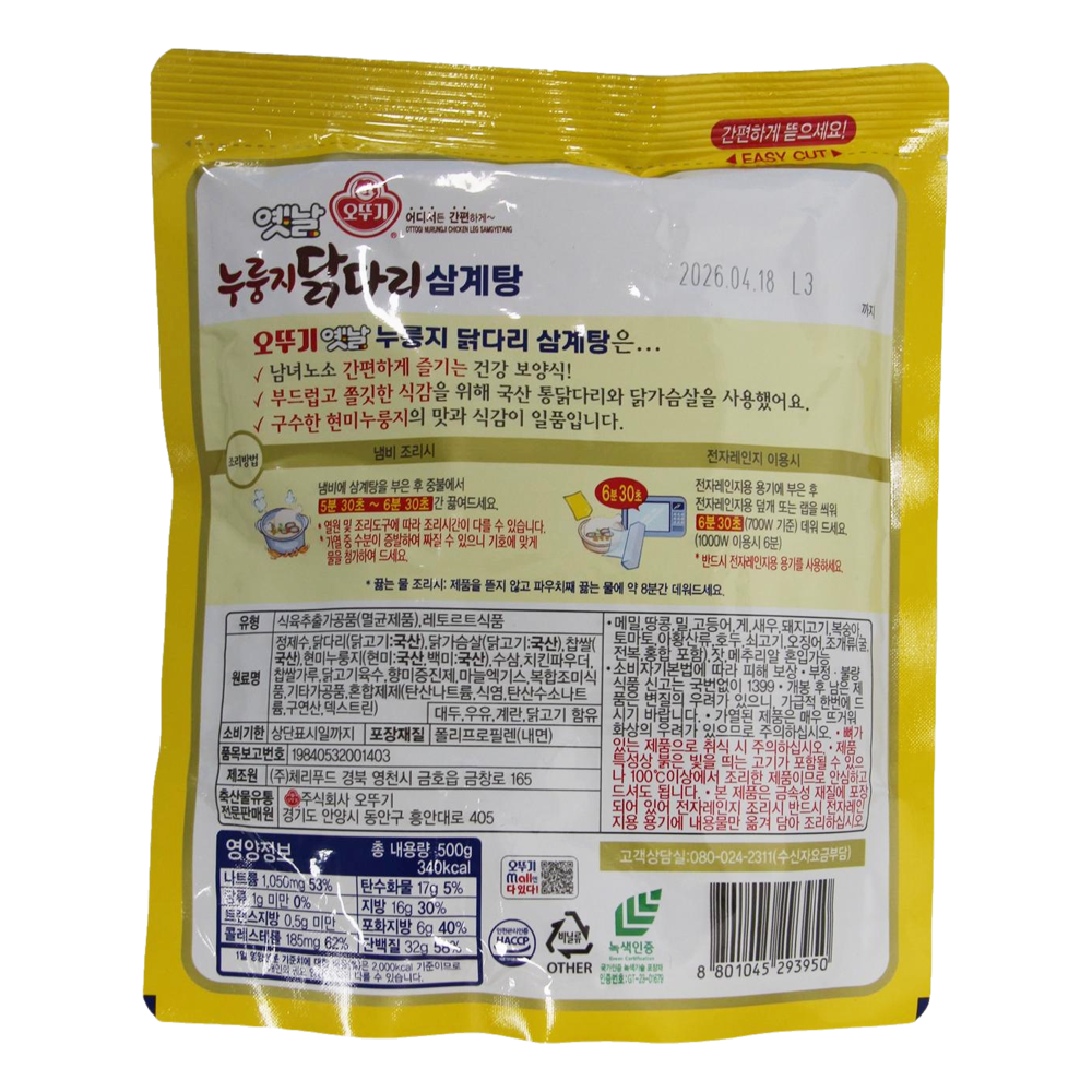 | 제품명 | 누룽지 닭다리 삼계탕 500g /오뚜기 |