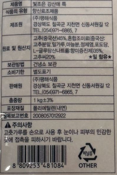 | 품목 또는 명칭 | 강산애)혼합고춧가루(굵은)·1kg(중국산)/평해식품 |