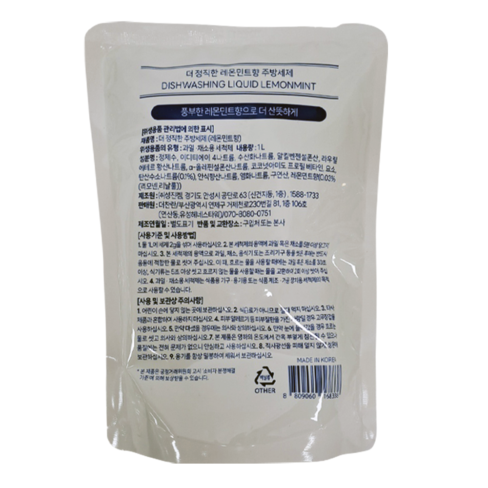 | 제품명 | 더 정직한 주방세제(레몬민트) 리필 1L /더찬란 |