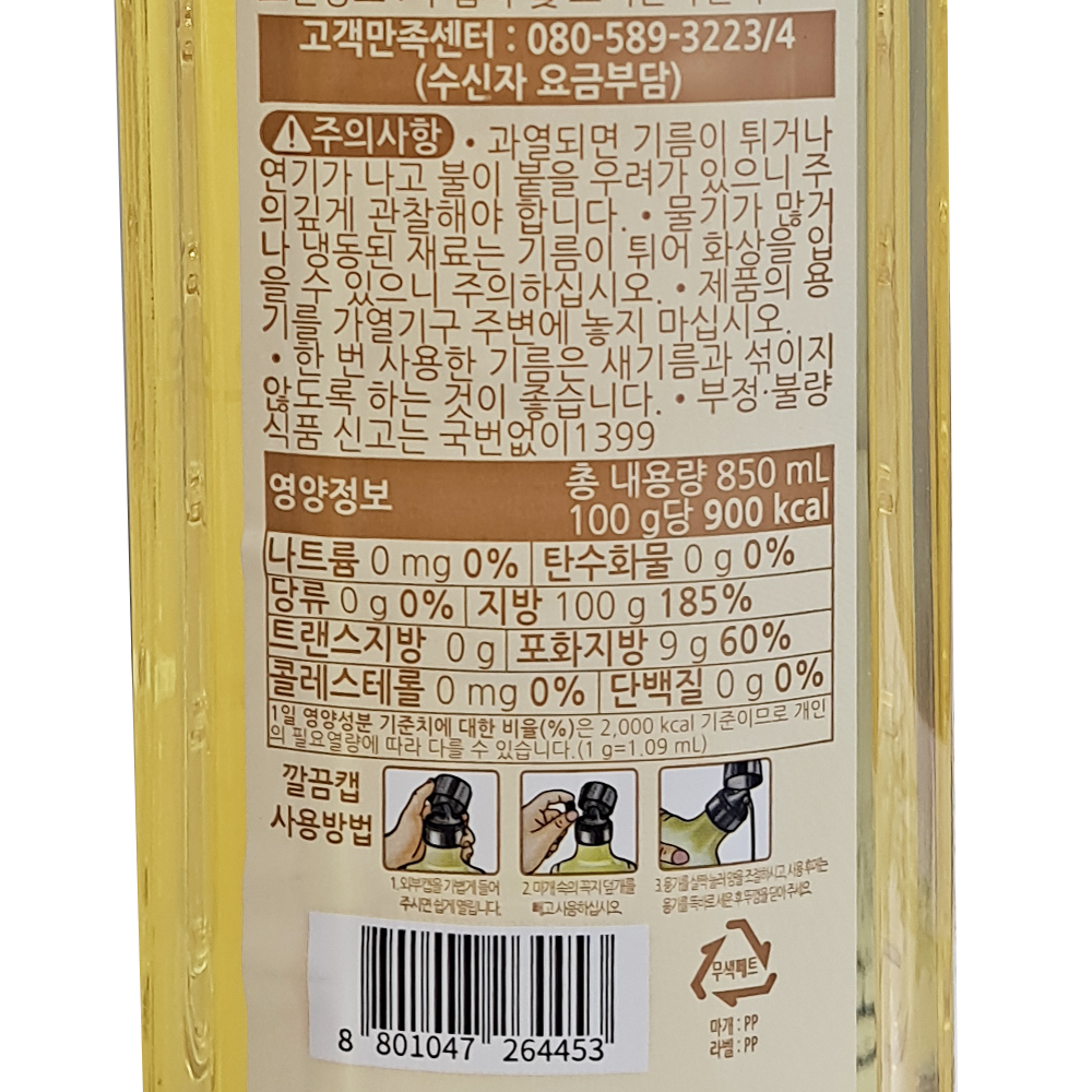 | 제품명 | 카놀라유 850ml/동원F&B |