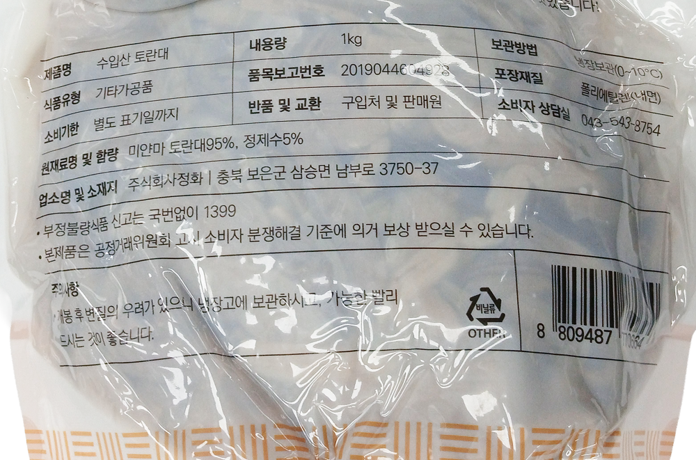 | 보관방법 또는 취급방법 | 보관시 주의사항:냉장 0~10℃ |
