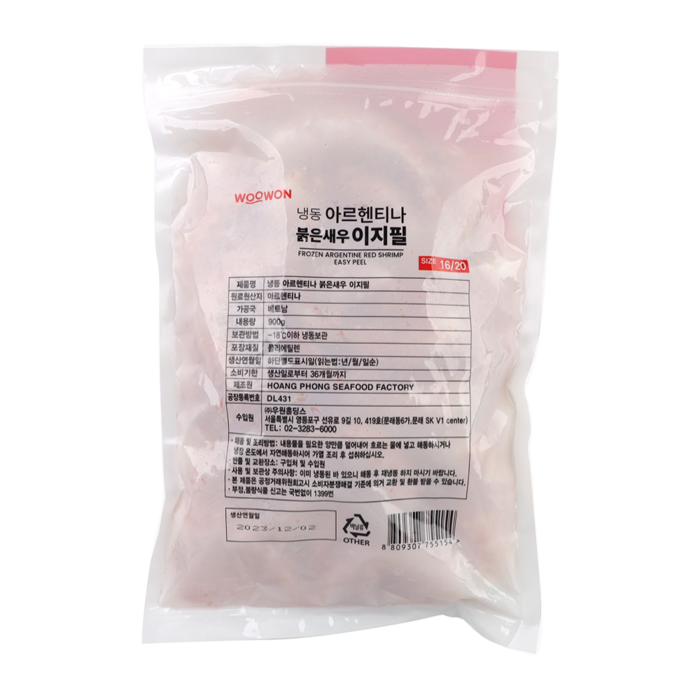 | 품목 또는 명칭 | 냉동 아르헨티나 붉은새우 이지필 900g/우원홀딩스 |
