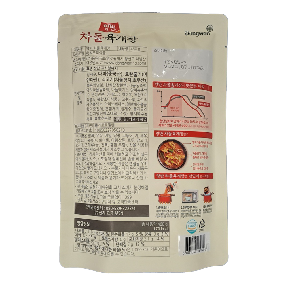 | 제품명 | 양반 차돌 육개장 460g /동원F&B |