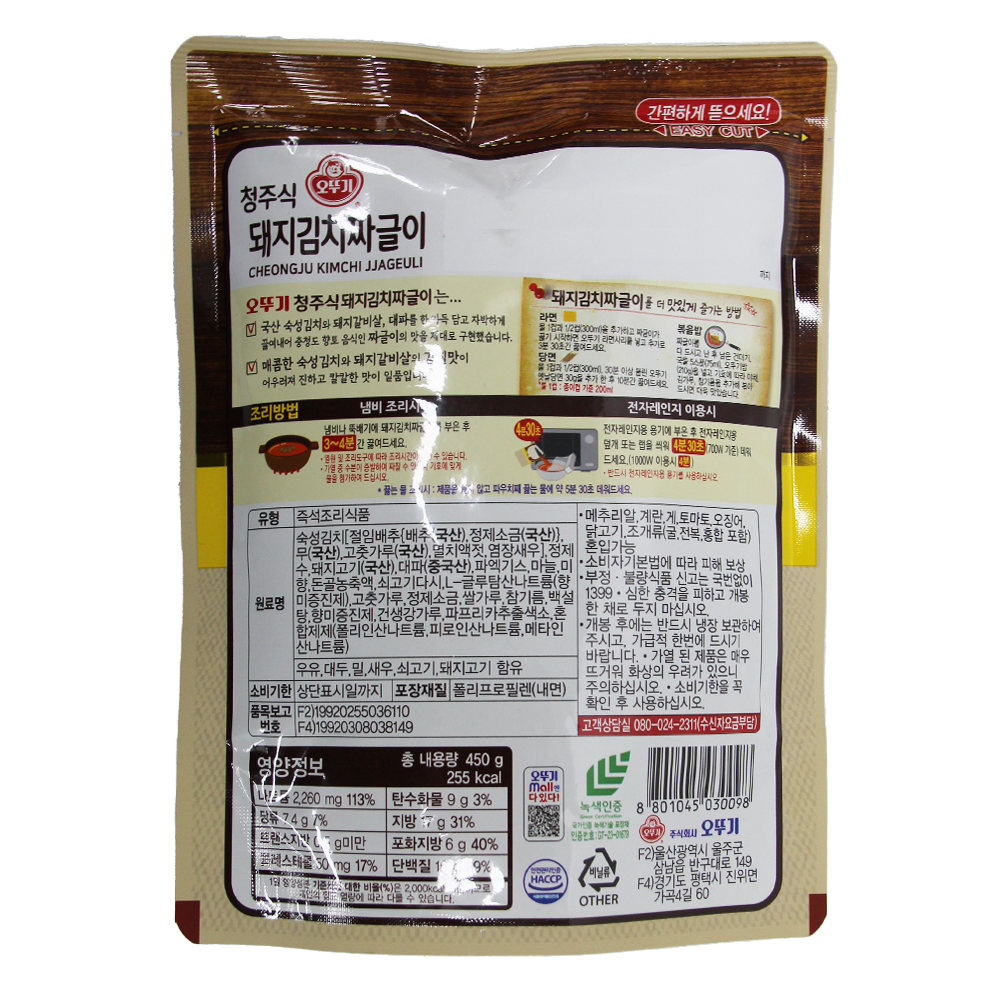 | 제품명 | 청주식 돼지김치짜글이 450g /오뚜기 |