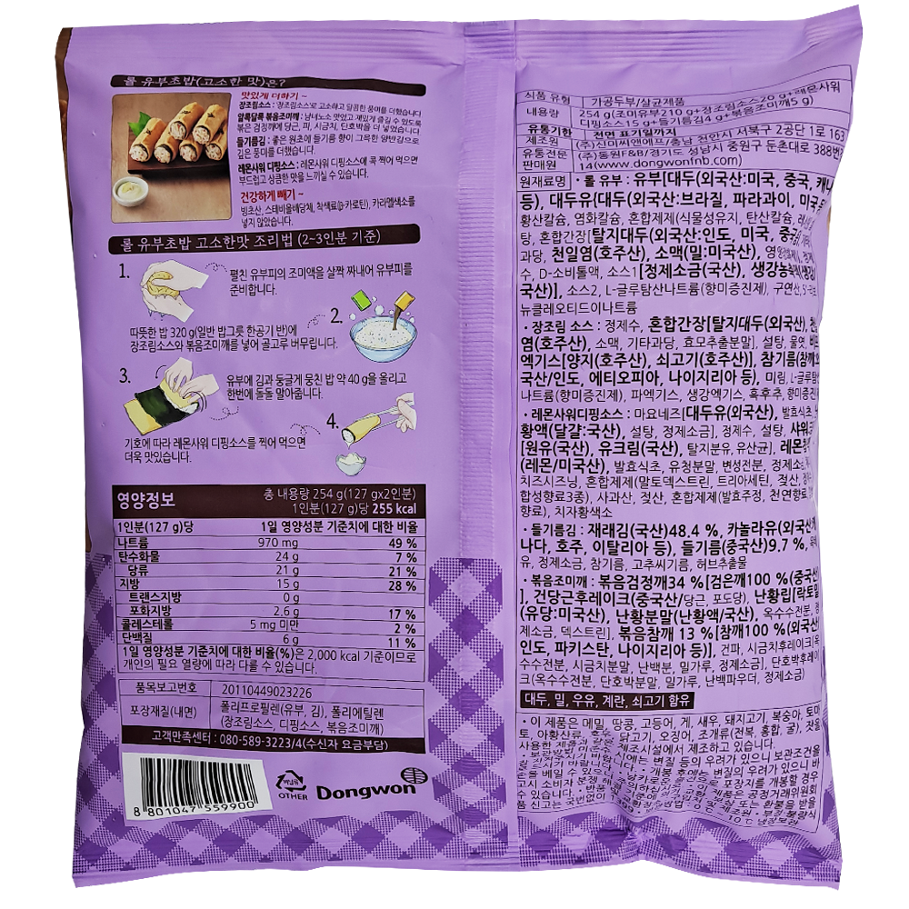 | 제품명 | 롤유부초밥 (고소한맛) 254g/동원F&B |