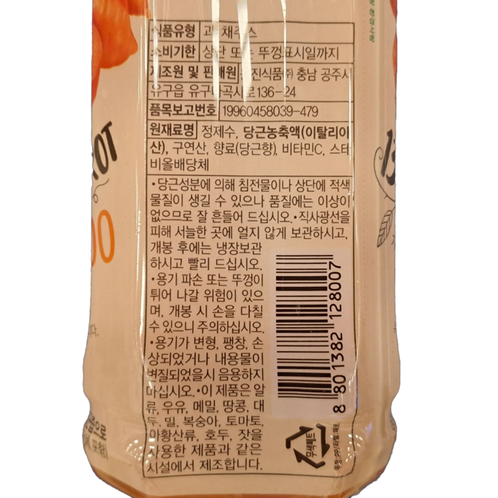 | 포장단위별 내용물의 용량(중량), 수량 | PET/[1.5L] |