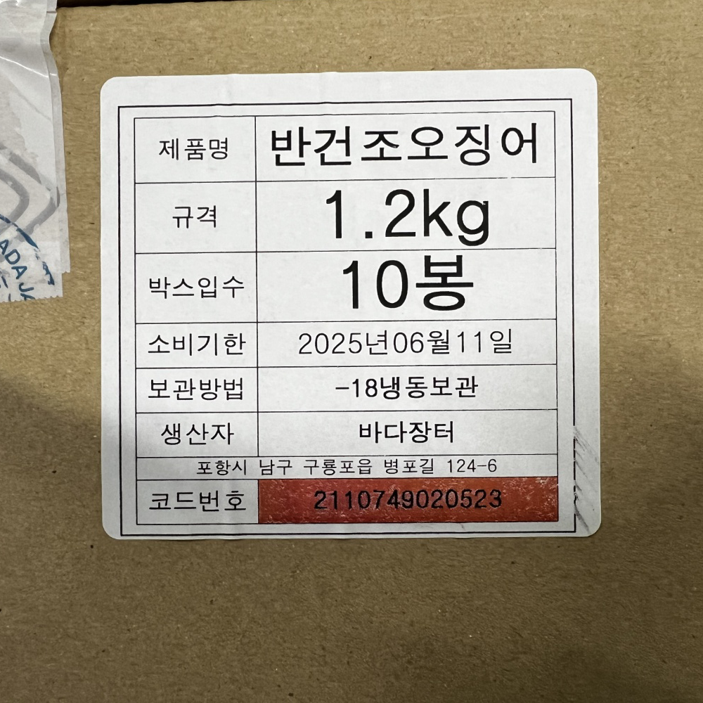 | 품목 또는 명칭 | 반건조 오징어 1.2kg·10미(피데기)/원양산 |