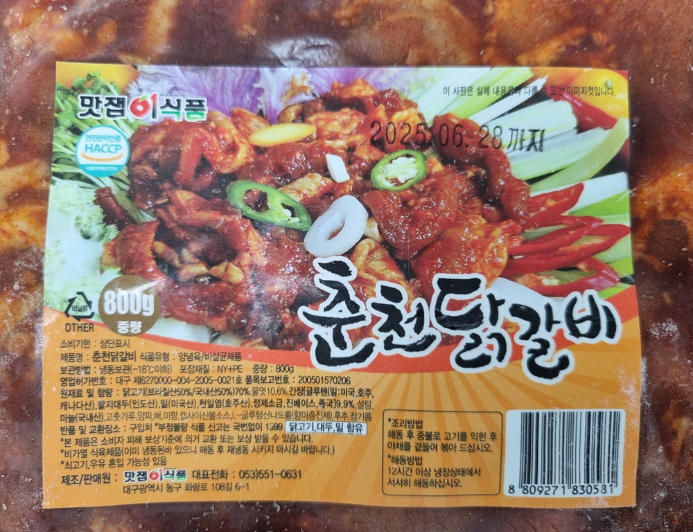 | 제품명 | 춘천닭갈비 800g/맛잽이식품 |