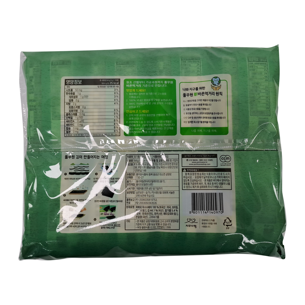 | 제품명 | 풀무원) 참기름 재래김 64g(4g×16봉) |