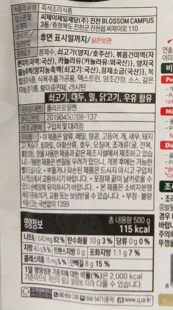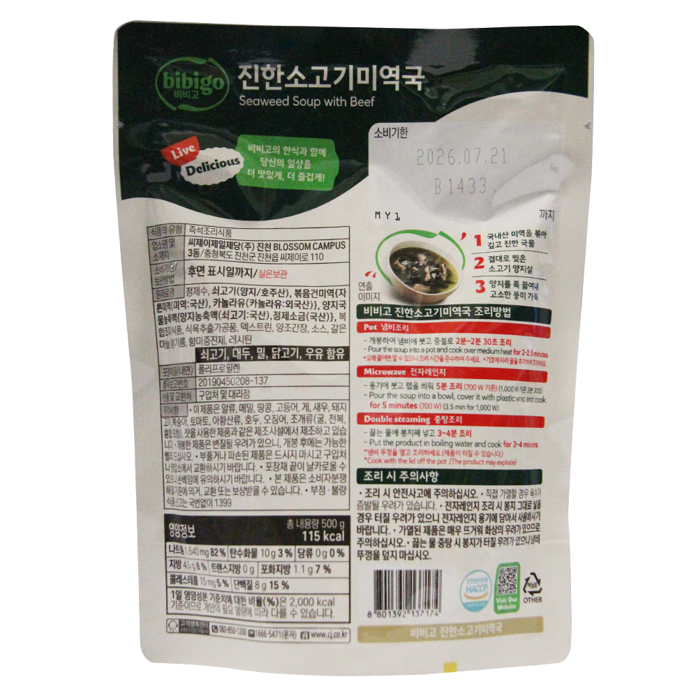 | 제품명 | 비비고 진한 소고기미역국 500g /CJ |
