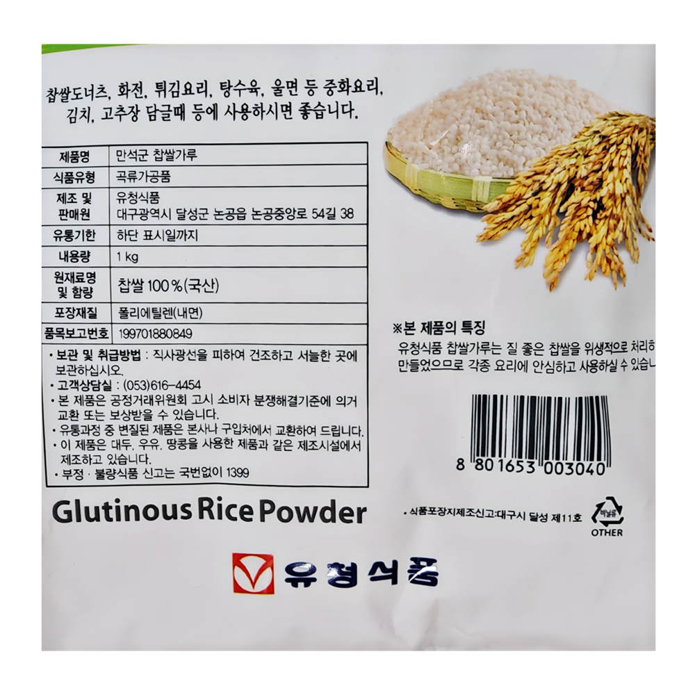 | 제품명 | 순·찹쌀가루1kg (찹쌀100%)/유청식품 |
