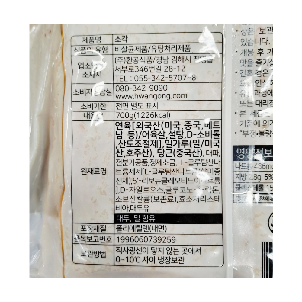 | 제품명 | 소각 야채맛 사각어묵 700g/환공어묵 |