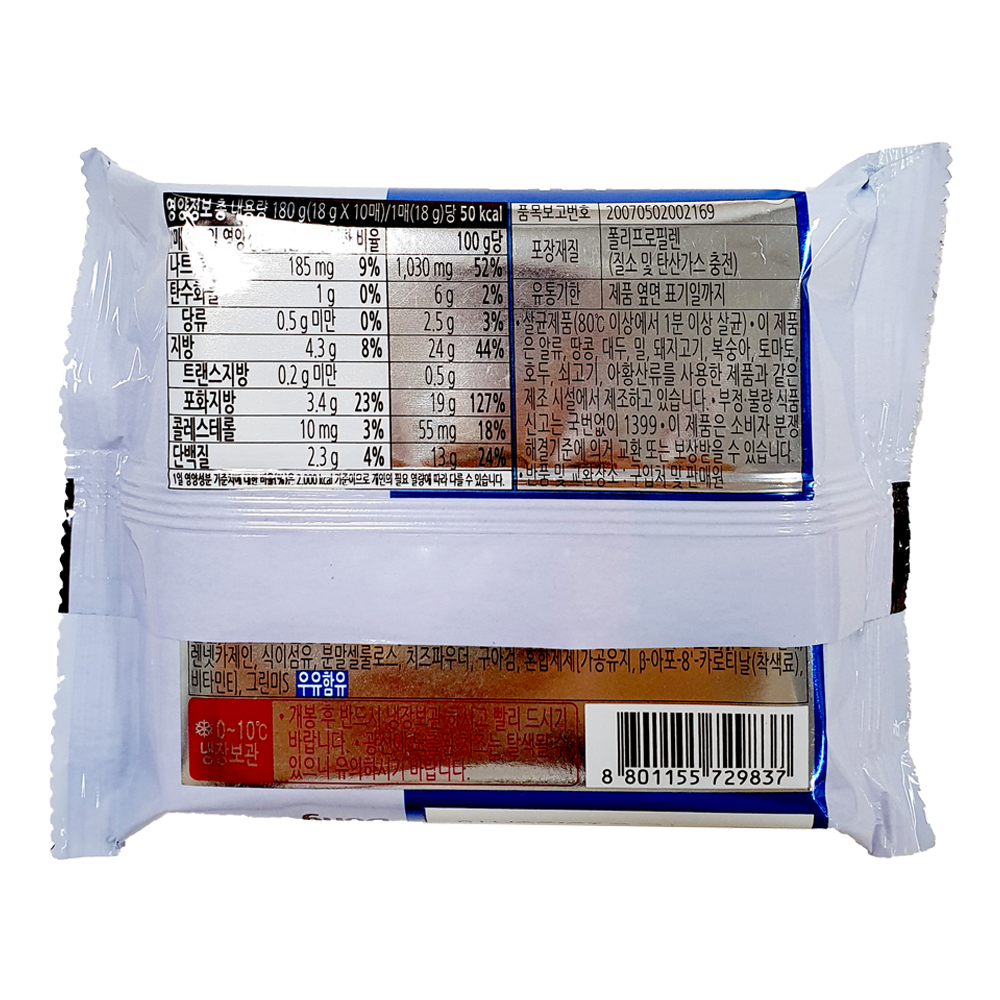 | 소비자안전을 위한 주의사항 | 보관시 주의사항:냉장 0~10℃ |