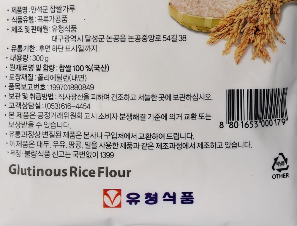 | 제품명 | 찹쌀가루300g (국산100%)/유청식품 |
