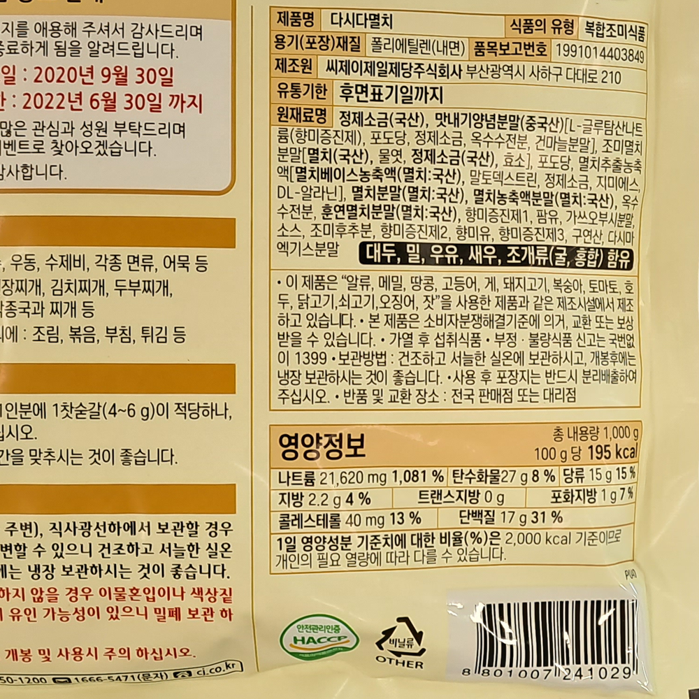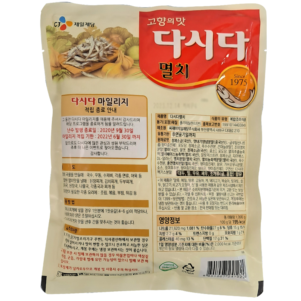 | 제품명 | 다시다 멸치 1kg/CJ |