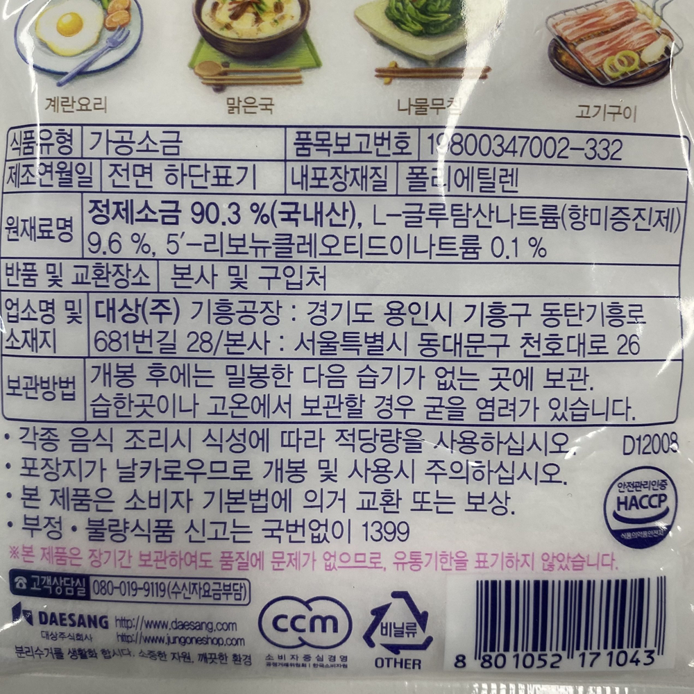 | 제품명 | 미원 맛소금 250g/대상 |