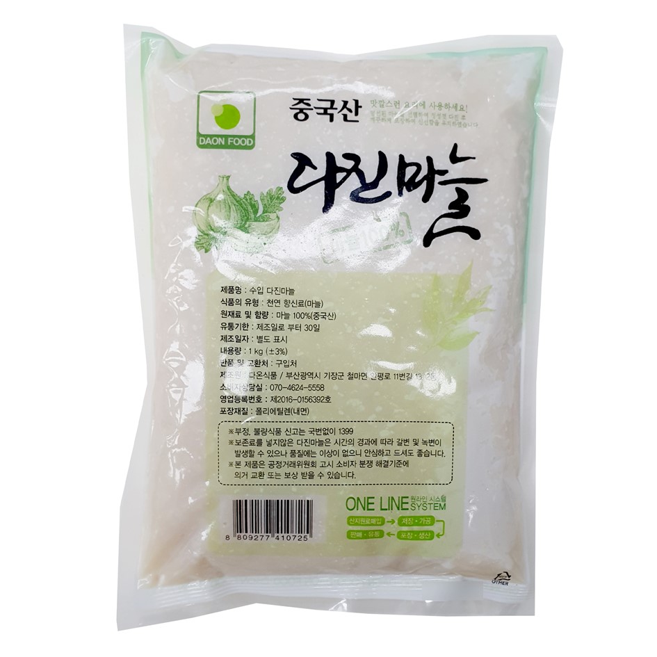 | 품목 또는 명칭 | 수입)다진마늘(중국산)·1kg/다온식품 |