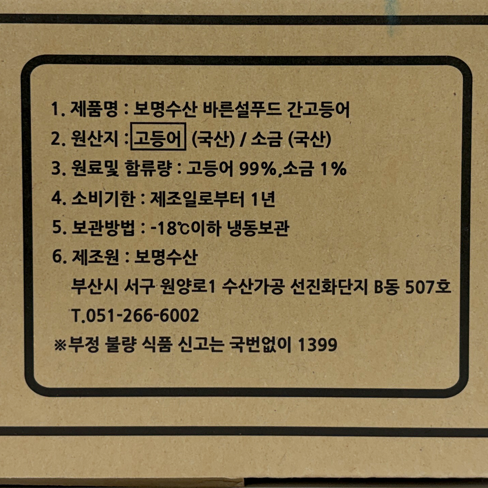 | 품목 또는 명칭 | 바른설푸드 국산 간고등어 20손(소) 10kg/보명수산 |