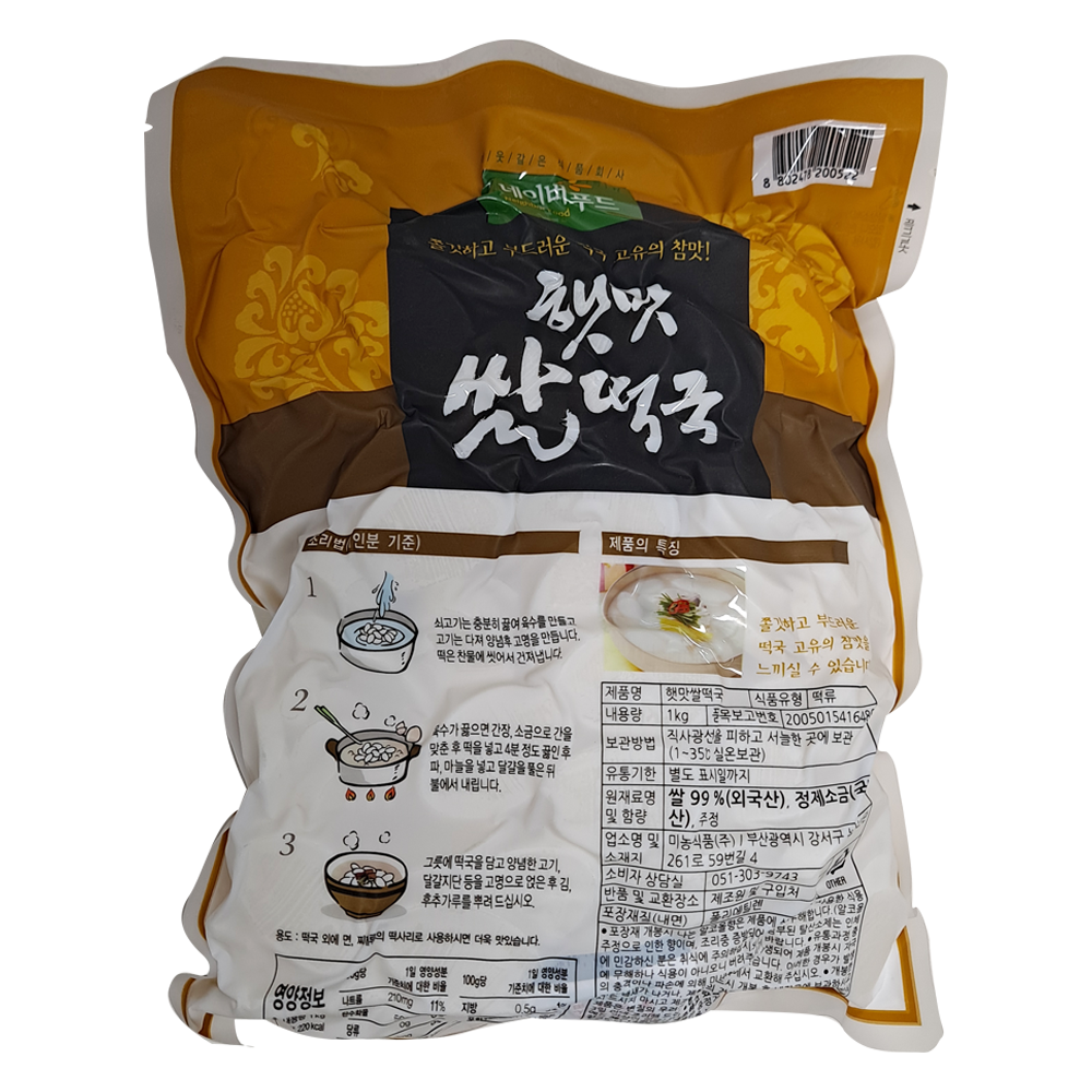 | 제품명 | 햇맛 쌀떡국 1kg/미농식품 |