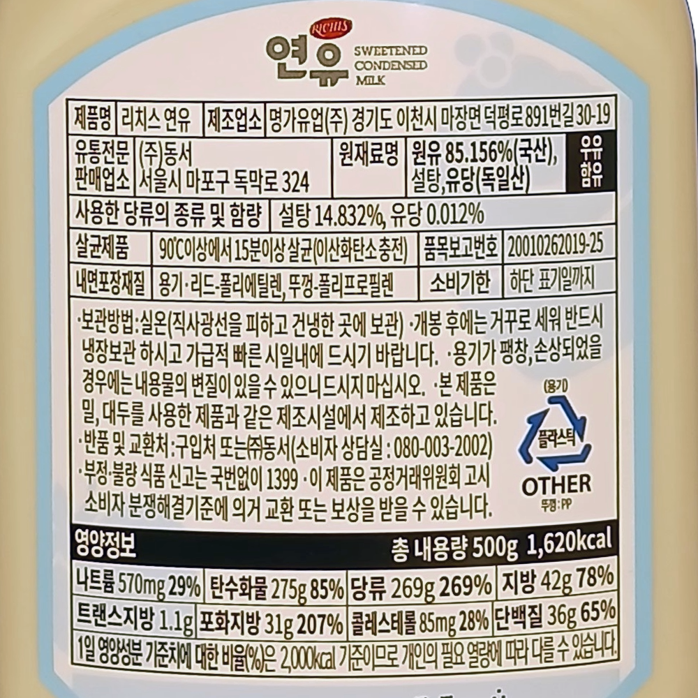 | 유전자변형식품에 해당하는 경우의 표시 | 상세정보 별도표기 |