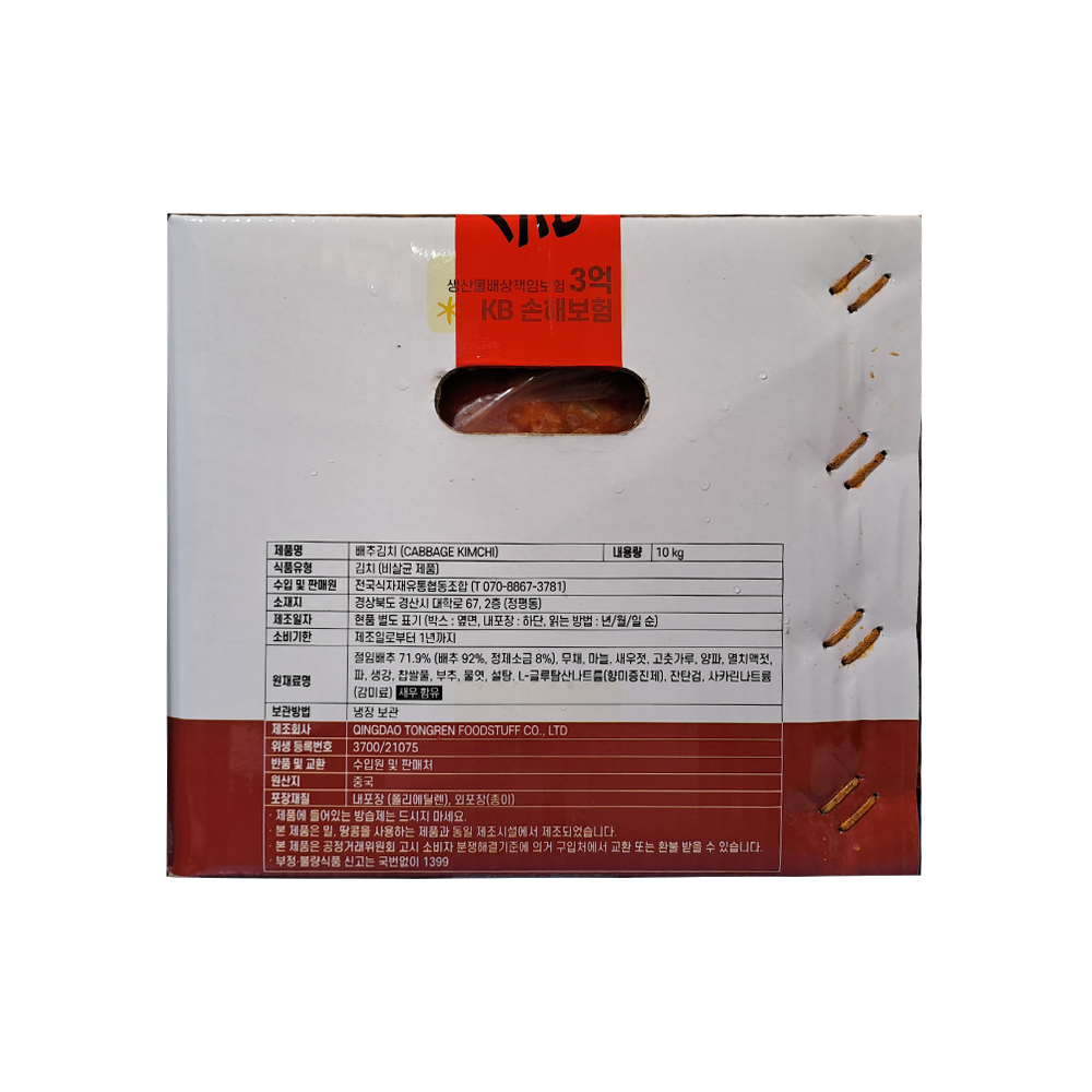 | 생산자 및 소재지(수입품의 경우 생산자, 수입자 및 제조국) | 원산지 : 중국산 제조사 : QINGDAO TONGREN FOODSTUFF CO.,LTD |