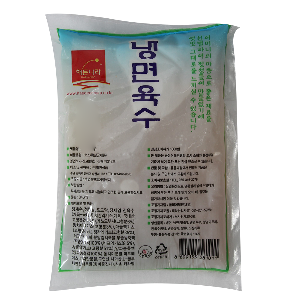 | 제품명 | 해든나라 냉면육수 340ml/합천식품 |