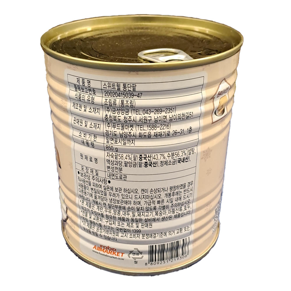 | 제품명 | 스위트웰 통단팥 850g/푸드올마켓 |