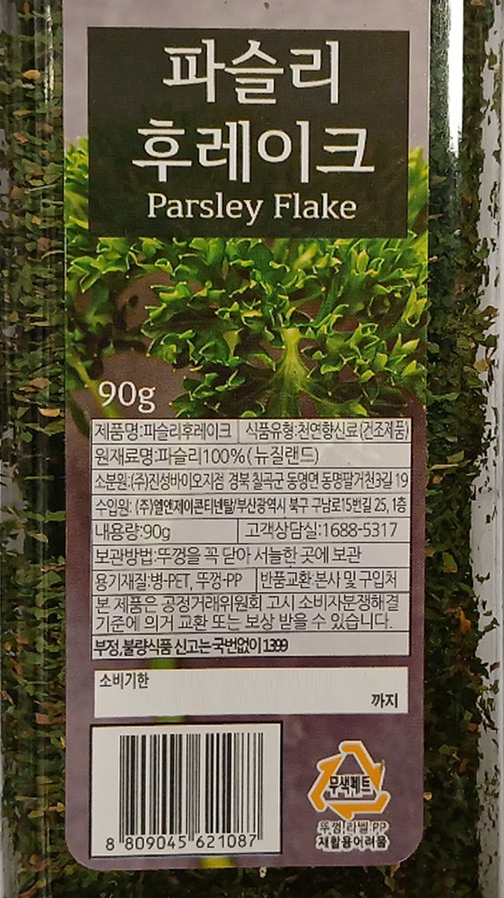 | 제품명 | 파슬리후레이크 90g/이슬나라 |
